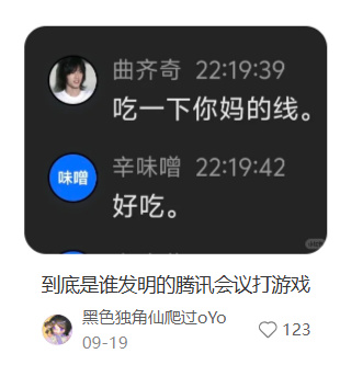 在網上衝浪的時候沒少看到關於隊伍遊戲語音的搞笑視頻,騰訊會議無非就是把語音內容以文字對話形式呈現,節目效果實則並不輸於視頻內容形式。