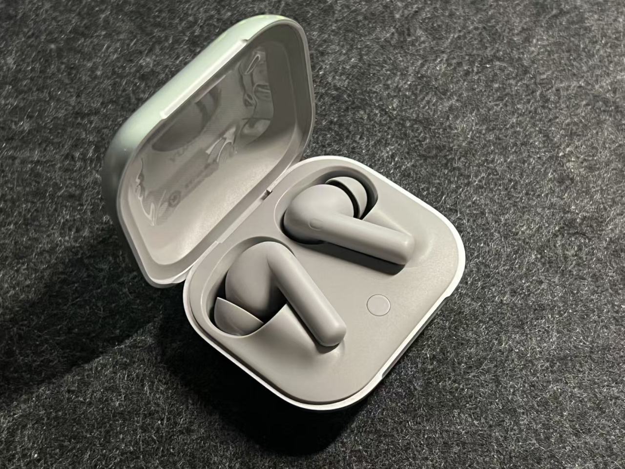 耳机是平躺式放置,相较于竖着的放置方式,耳机仓更好清洁,缺点就是充电仓无法做到很小巧,也无法单手打开。