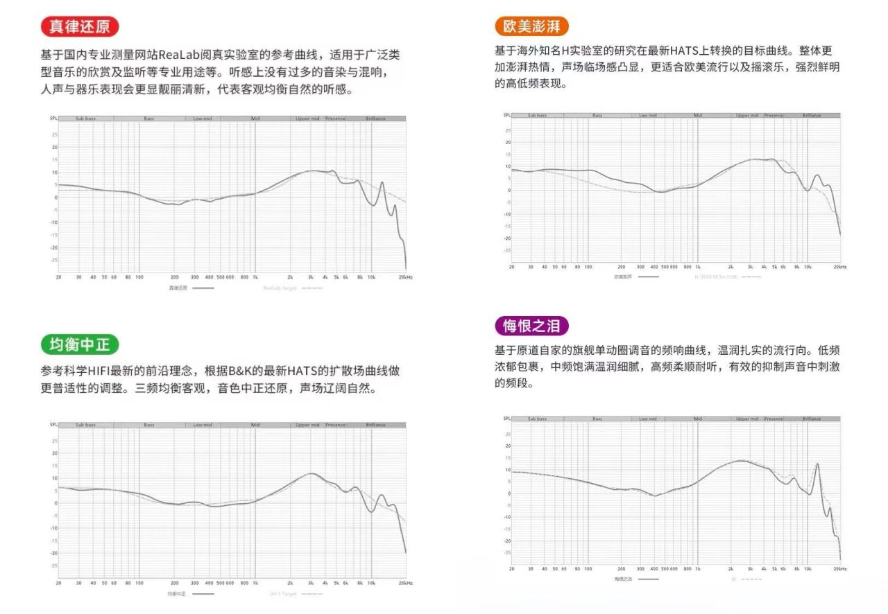 真律还原:听着给人的感觉人声音色非常的清亮,很干净,中频人声给凸显出来了,能听到更多的人声细节,适合听哪类歌曲我还真不好说,反正适合追求纯净人声的用户听。