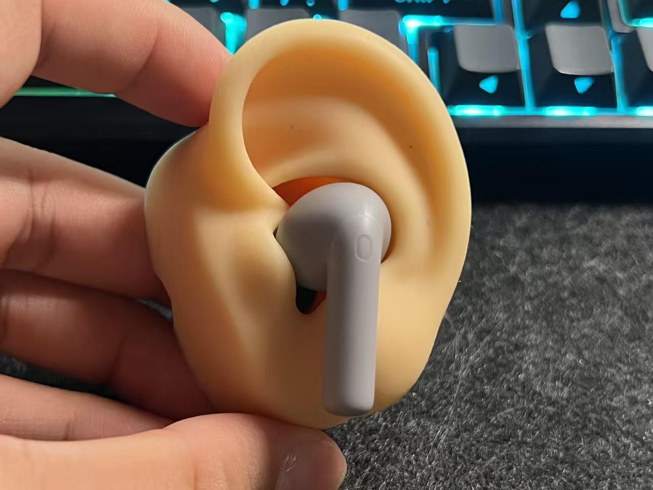 其次它不易掉,OriG in它是把钱用在了刀刃上(除材料外都是刀刃),咱不否认用塑料是为了节省成本,但塑料腔体较金属腔体入耳不刺激,也更轻,所以OriG in单耳只有4g左右的重量,磨砂材质的椭圆形腔体耳廓能很好顶住,保证正常运动不掉的情况下也不会顶着耳廓和外耳道很难受,整体还是很舒服的。