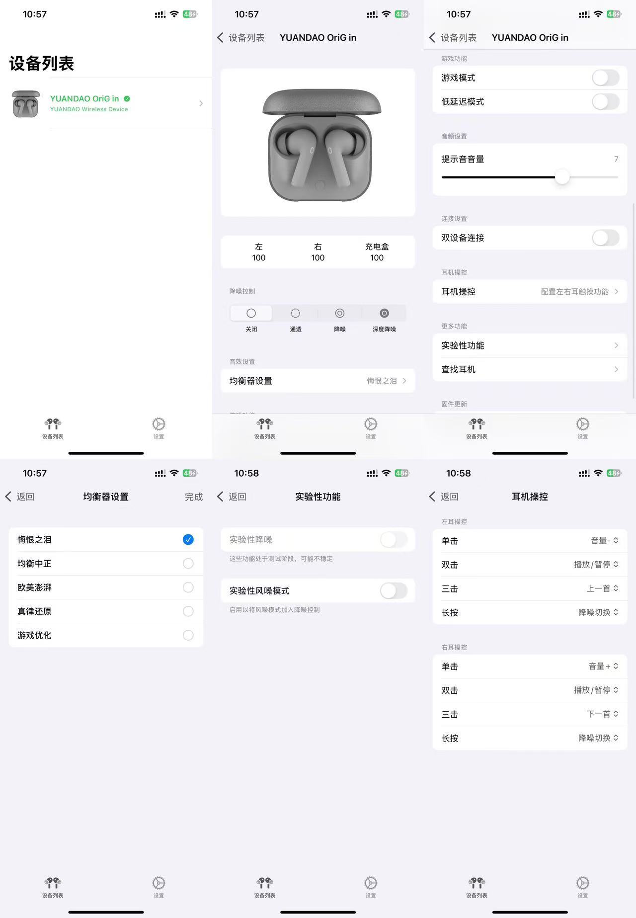 UI界面是我喜欢的风格,非常简洁,没有任何花哨多余的元素,该有的功能也一个不少:电量查看、降噪模式调节、五种均衡器选择等等,这里就不全部罗列了,有OriG in可以自己去app里研究。