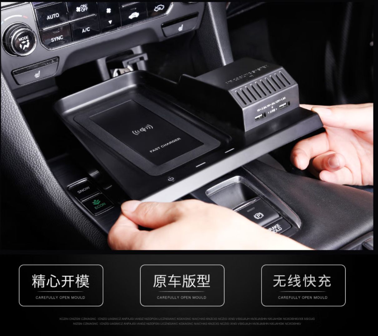 这种东西就是根据你的车型,把你点烟器那里的储物空间改造成一块无线充电板,一般还会再给你两三个usb口出来。如果你的车在点烟器附近有车机的usb口,那还能够起到拓展坞的作用。