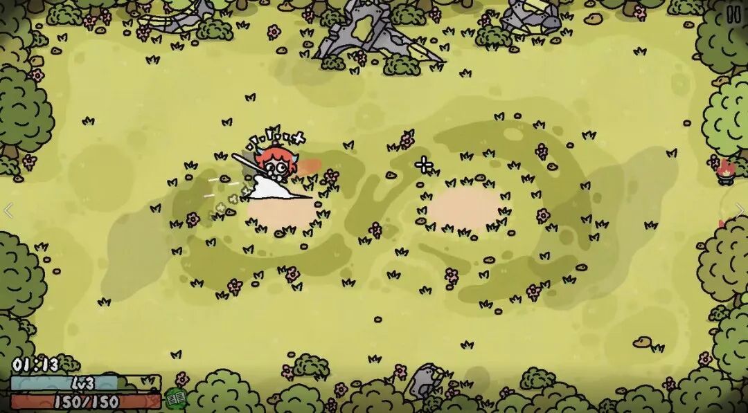 這款遊戲看起來像是個肉鴿動作遊戲:主角被剝奪了除了滑動鼠標外的一切操作方式,只能靠鼠標引導滑動,靠近敵人後會自動攻擊。攻擊有一定次數上限,消耗完後需要一定時間回覆,裝填完畢就會發出“叮”的一聲。