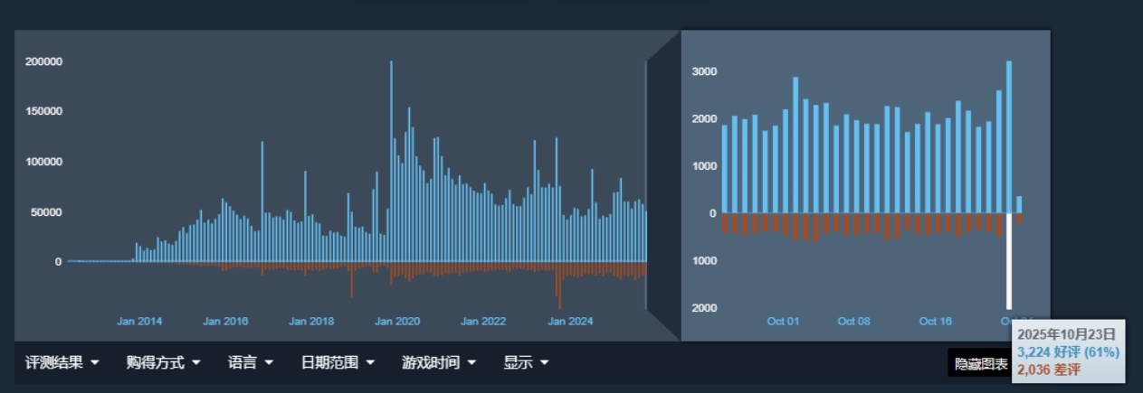 Steam平台10月23日当天新增超2000条差评,玩家痛斥V社“毁了游戏”。此次事件再次凸显虚拟资产投资高风险性。