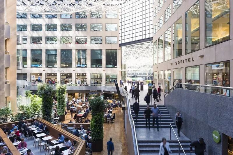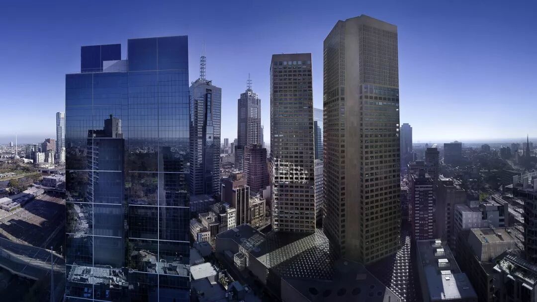 在设计了美国首批城市综合体之后,贝聿铭于上世纪70年代将其成熟的综合体模式首次引入澳大利亚。坐落于墨尔本柯林斯大道、占用整个街区的Collins Place项目,在1975年落成时,其双塔结构不仅创下了澳大利亚最大单体建筑的纪录。该项目更卓越之处在于其核心的公共空间设计:一个由宏大玻璃顶盖覆盖的“温室公区”(被称为“Great Space”的中庭)。这个高六层的下沉广场,作为澳大利亚首个采用玻璃空间框架结构的此类空间,成功地将自然光照和通风引入建筑核心,巧妙融合了商业零售与公共休闲功能,成为一个不受天气干扰、充满活力的“城市客厅”。其设计理念对后续澳洲建筑产生了深远影响。