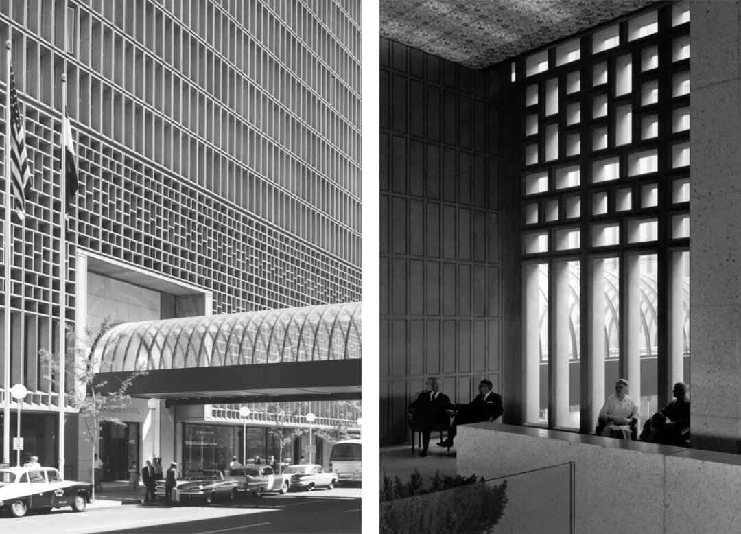 作为建筑大师贝聿铭早期的酒店作品,建于1960年代的丹佛喜来登酒店极具开创性。它被誉为美国首批现代综合体项目的先驱,巧妙地将酒店、百货公司、停车场和公共空间融为一体。其建筑立面窗格疏密有致的设计,不仅在当时极富新意,也使这座建筑成为现代主义的杰出作品.