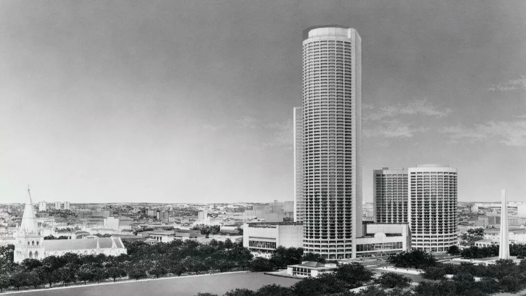 当Collins Place携墨尔本索菲特酒店投入运营不久,贝聿铭的另一扛鼎之作——新加坡莱佛士城便紧随其后,破土而出。这座耗费六年光阴雕琢的建筑群,堪称一件时代的艺术品。其73层的威斯汀史丹福酒店在落成之时,以擎天之势创下了全球最高酒店的纪录,不仅刷新了新加坡的城市天际线,更成为贝聿铭笔下又一枚深刻的现代主义印记。