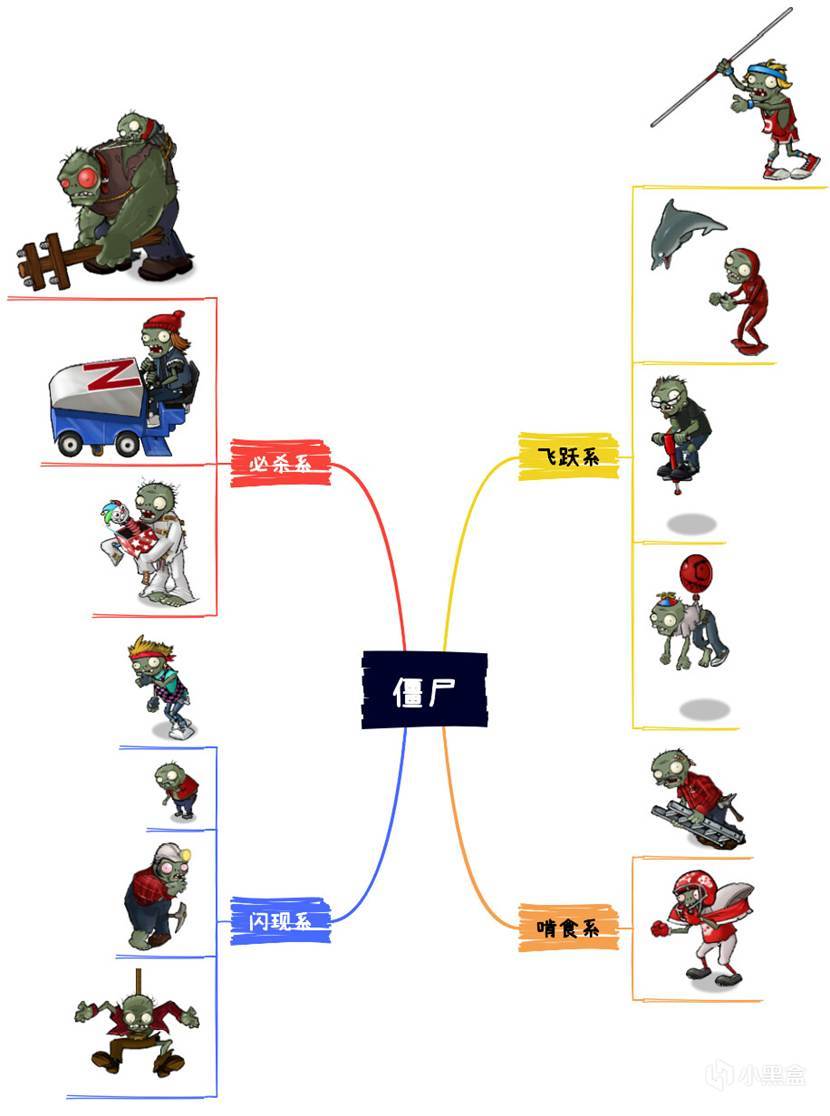 秒杀类——对植物的伤害是一击必杀的僵尸。代表僵尸:红白、冰车、小丑。这类僵尸对阵型威胁极大,是必须优先考虑解决的敌人。