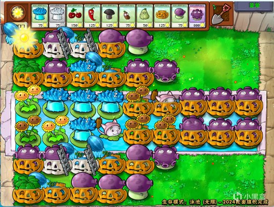 请别忘了,我们还有辣椒。虽然有解冻和烧梯的缺点,在这个阵中辣椒却可以杀伤一整行的僵尸,补齐了我们边路的输出缺口;同时由于只烧一行,也不容易触发新一波僵尸的刷新。于是我们得到两仪无炮的最终节奏: