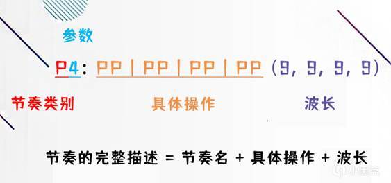 将节奏名、具体操作、波长结合在一起,我们就得到了轨道语言下对一个节奏的完整描述。