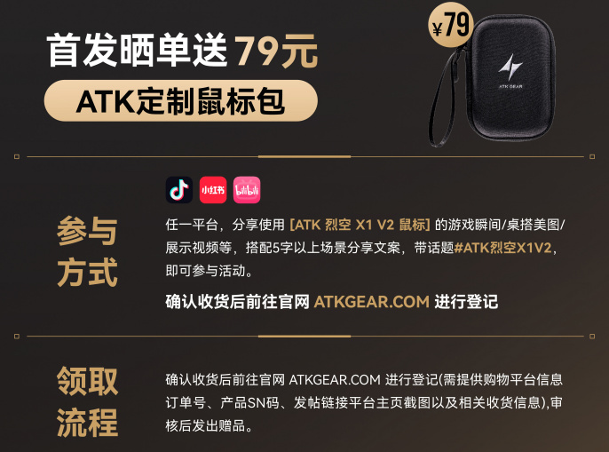 首發當天,會直接送 99 塊錢的 ATK 烈 Air 鼠標墊。這個鼠標墊是天然橡膠底,但布面跟 ATK 的烈差不多。