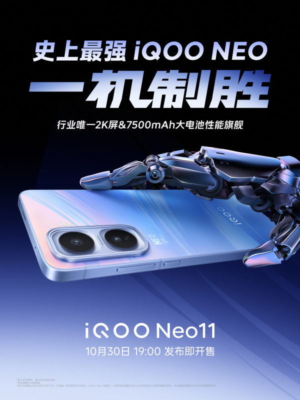 iQOO官宣定位“超神標準版”的iQOO Neo11將於10月30日19:00重磅發佈。