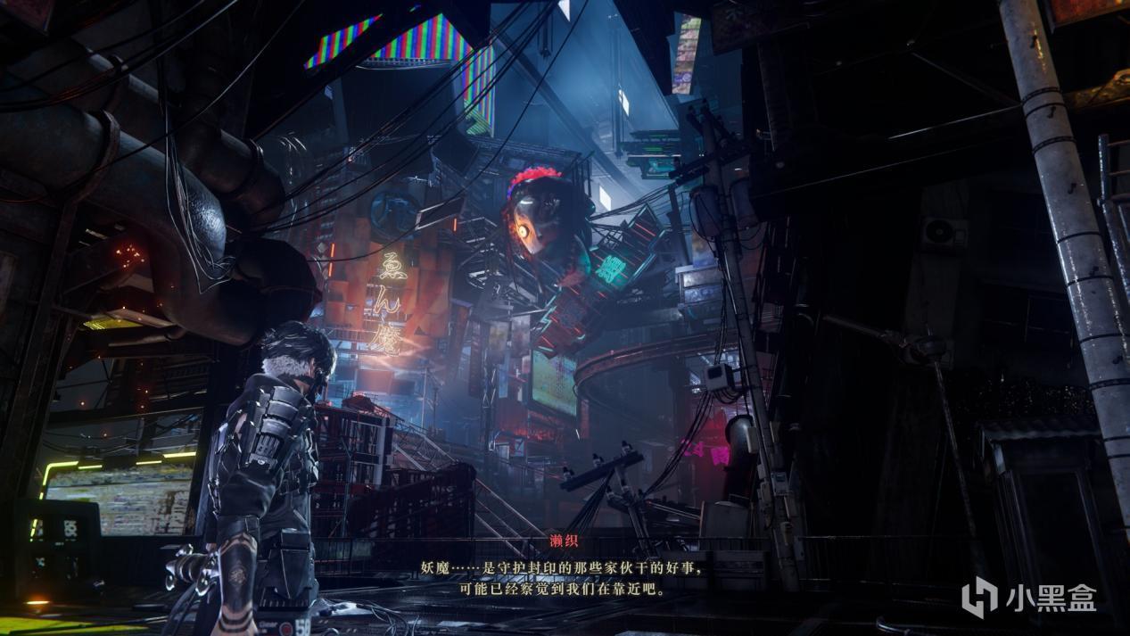 另一项比较吸引我的设定则是游戏非常多变的地图风格,第一张东京都市大地图既有前期的赛博朋克风格,又有后期融合了日本妖魔设定的怪诞氛围,杂糅了科幻与灵异的设计别有一番独特的体验。