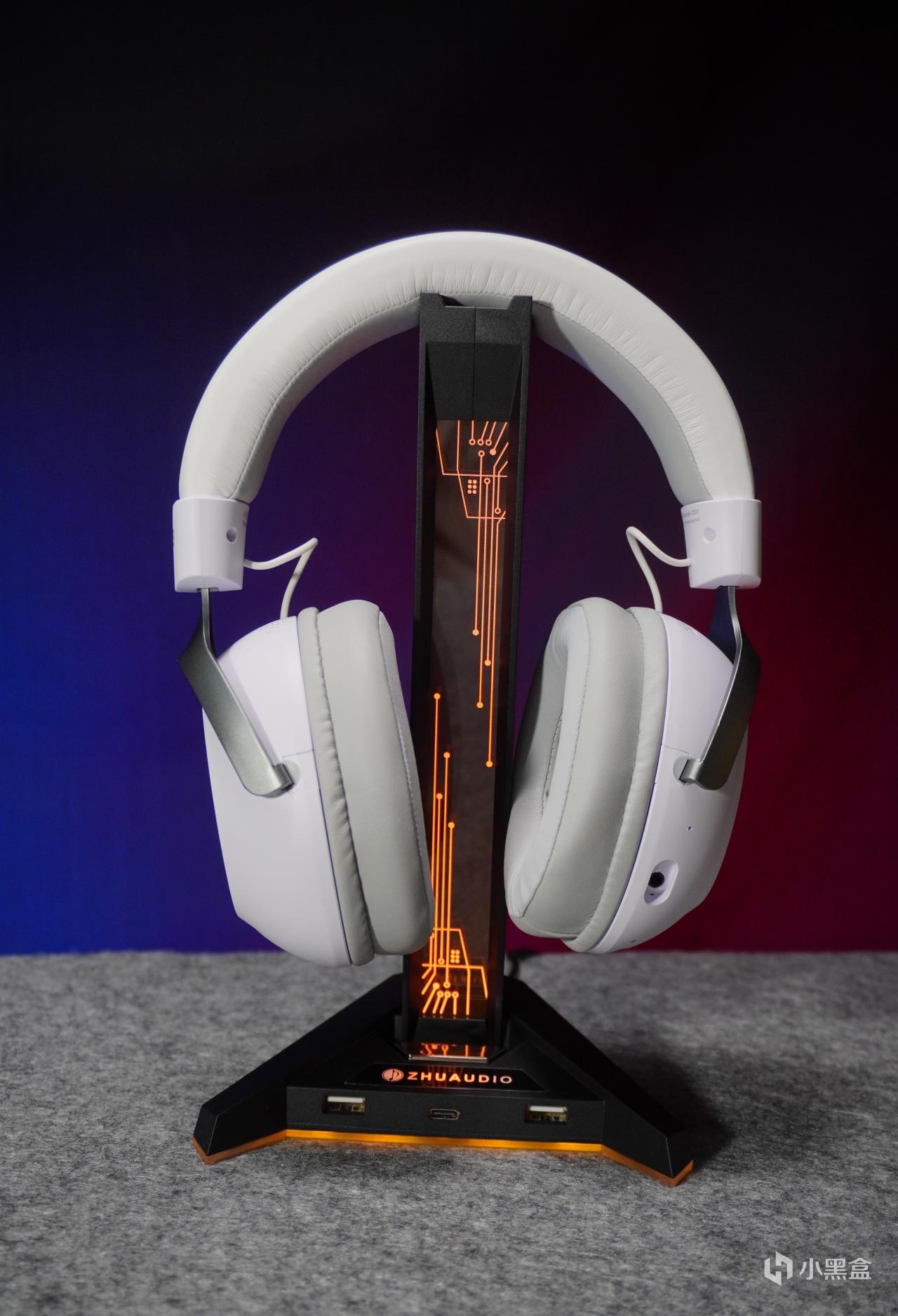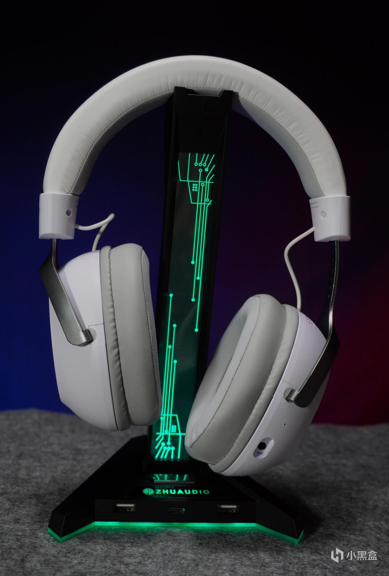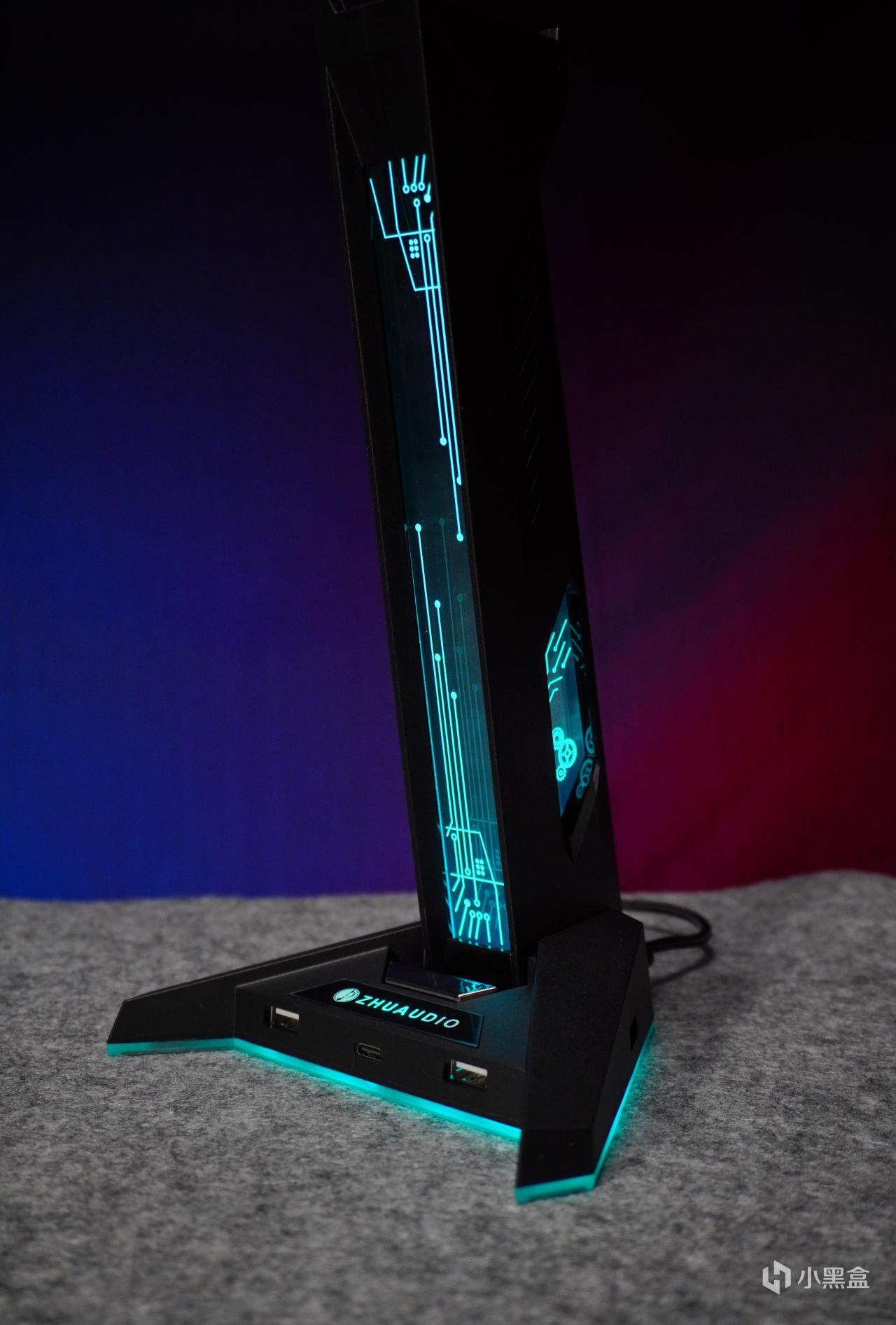 最后就是搭配耳机使用的耳机支架了,这是一款会发光,而且还是一款USB扩展坞的耳机支架。外观造型非常酷炫,搭配RGB灯效有一种高科技的感觉。