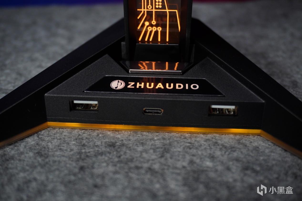除了当成一款耳机支架以外,还可以当做一款USB扩展坞,拥有3个USB接口和一个Typec接口,可以插上键盘、鼠标还有耳机的2.4G接收器,平时拿去的时候也比较方便,性价比还是非常不错的。