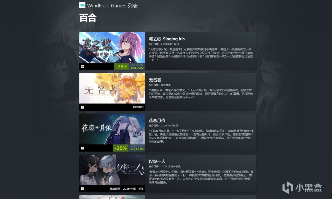 首先是为什么想到要举办百合游戏节。给不了解咱们风域的小伙伴简单介绍一下,我们是一家以视觉小说为主的独立游戏制作组与发行商,制作和发行的游戏里有相当一部分是百合游戏,如《花恋月依》、《鸢之歌》等。