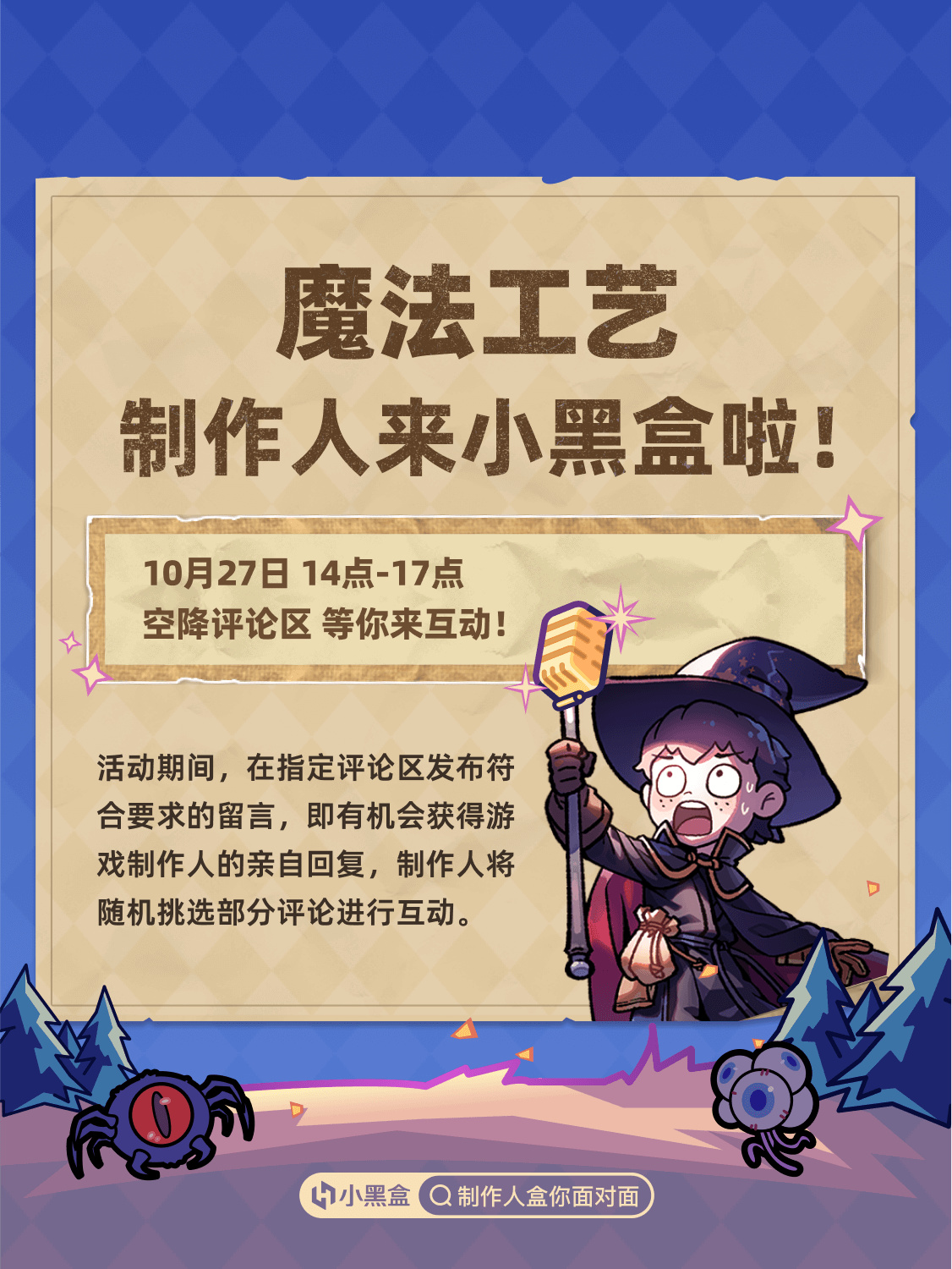 在《制作人盒你面对面》活动中,我们将每期邀请一个游戏制作人在指定内容的评论区中与用户进行评论互动,你将有机会与游戏制作人在线互动,了解游戏背后的故事。本期邀请到的游戏制作人所属游戏为《魔法工艺》。