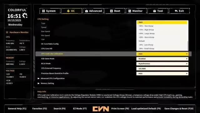 CVN X870E ARK 方舟搭载新一代图形化 BIOS,不仅重新设计 EZ 主页,将常用的一键 EXPO、PBO 预设、开机优先项等功能集中于 EZ 首页,方便普通玩家快速优化系统性能;同时在高级菜单中加入 CPU LOADLINE 防掉压选项、异步超频选项以及丰富的内存参数调整。