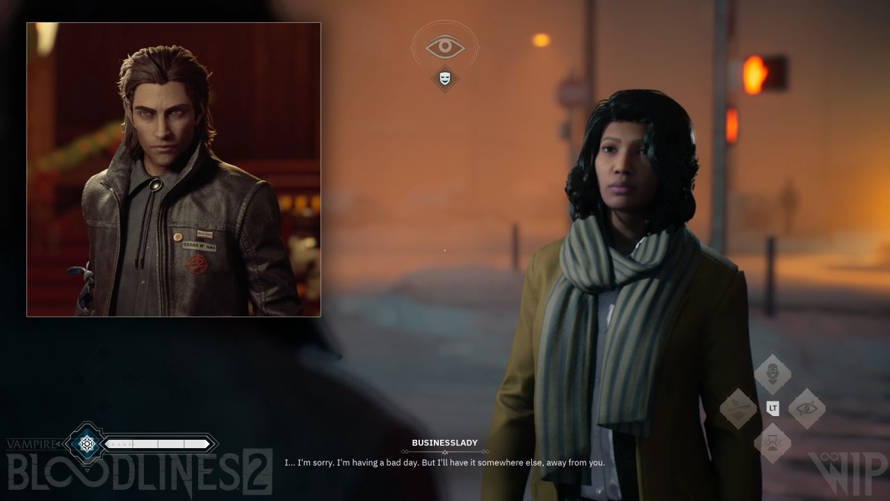 在《吸血鬼:避世血族2》中,吸食人类的血液有两个主要目的:首先人类是移动的治疗药水,其次是能让你的吸血鬼技能(与每个吸血鬼氏族相关的特殊能力)得到恢复。严格来说,这并非一款生存游戏,因为你的嗜血欲望不会随着时间的推移而增长。但我还是感觉自己需要经常吸血,无法完全忽略这个需求,这是个很好的设计。