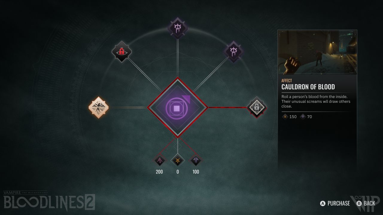 游戏中有一个有趣的鲜血共鸣系统,当角色处于恐惧、愤怒或欲望等特定情绪时,根据你所属的不同氏族,可以鼓励他们沉浸在某种情绪当中,然后在他们处于这种情绪高涨的状态之下吸食他们的血液,这样就能获得解锁某些技能所需的货币。