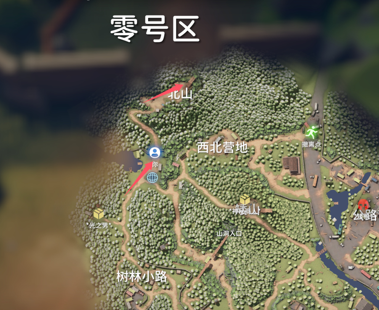 然後利用傳送點快速到達北山腳下,再破掉最後一堵牆,上山即可找到滑索,通過它就能直接抵達倉庫區了。
