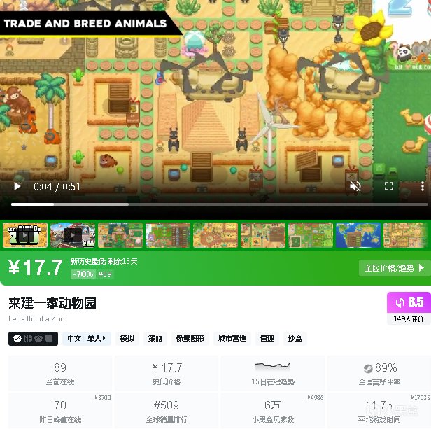 是时候造一个动物园啦!在这个可爱又深度的模拟经营游戏里放飞自我,创造你独一无二的动物帝国吧!引进并繁育稀有生物,雇佣合适的员工,让你的游客快快乐乐,并在同时应对一大堆稀奇古怪的奇妙事件。除此之外,你还能组合不同动物的DNA!从威严端庄的长颈象,到爱好和平的熊猫头鹰——创造出超过30万种不同类型的生物吧!
