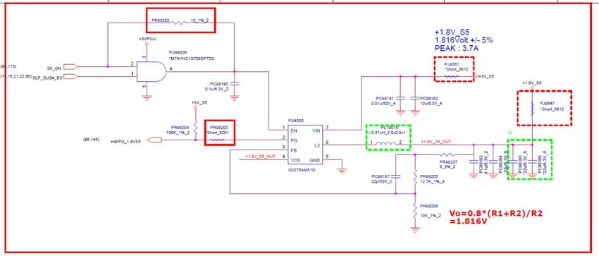 在图1中可以看到最终产生的3.3V供电名称为+3VPCU,图2中只有芯片收到S5_ON的时候才会把+3VPCU输出同时改名为+3V_S5,而S5_ON信号是由EC发出的,只有当适配器接入或者按开机键EC才会开始输出这个信号。