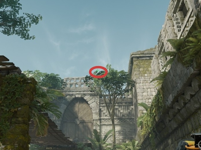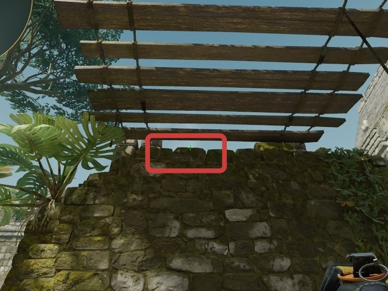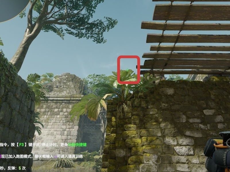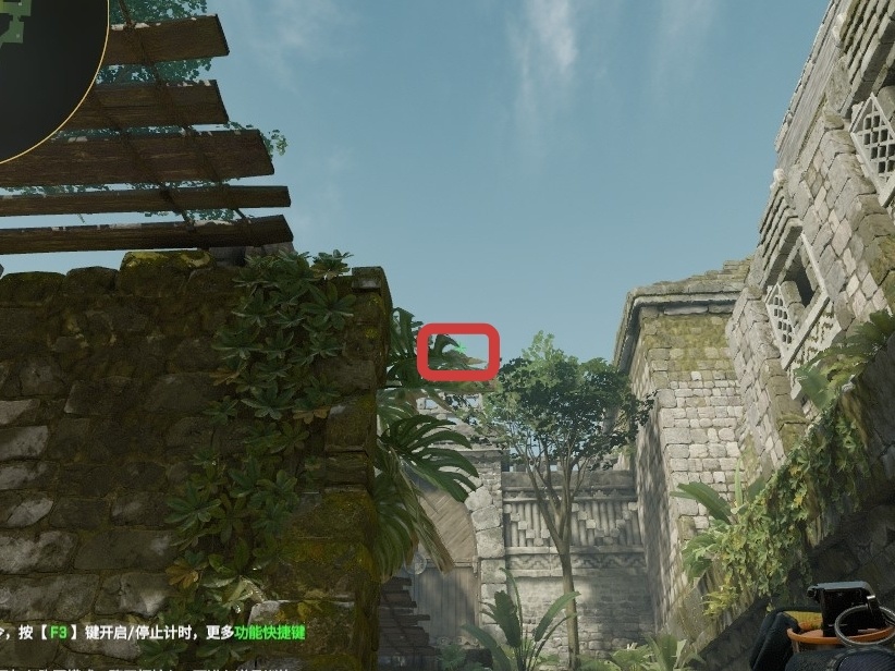 因为这个出生点被上面的吊桥挡住了,所以我们要先瞄准如图所示的地方