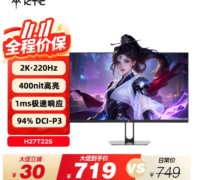 关键信息:27英寸2K 220Hz高刷 10bit色深 FastIPS 响应时间1msGTG