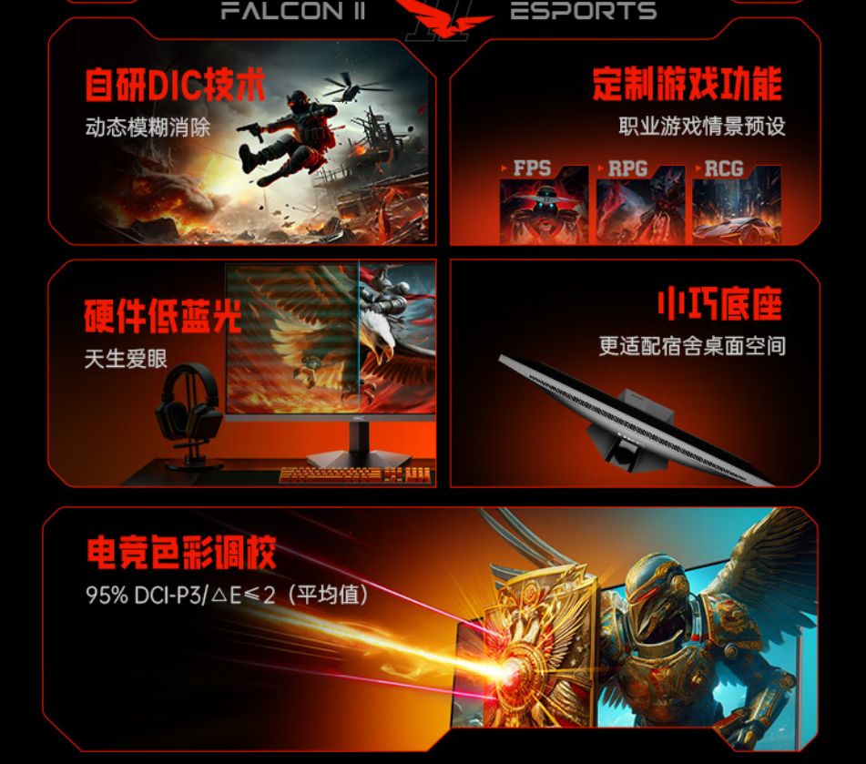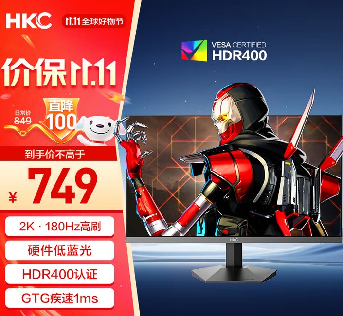 关键信息:23.8英寸2K 180Hz高刷FastIPS硬件低蓝光HDR400广色域 响应时间1msGTG