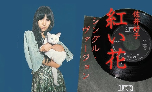 (佐井好子和猫猫。专辑名红花其实取材于柘植义春的文学性漫画名作红花。这也是我在前言所说日本迷幻另类民谣与另类艺术漫画具有强关联性的又一佐证。我在某一期动画病患中略微提及过柘植义春,这里就不再过多补充赘述。有时间或许可以开专题文章谈柘植义春,他是真正首屈一指的艺术家。如果写关于他的文章我得花费十二分力气严肃起来,不能像写动画病患系列一样那么随兴。)