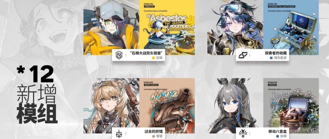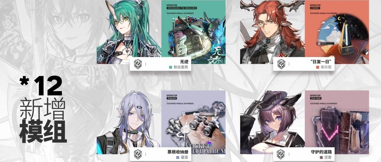 驭法铁卫、新干员模组和推王二模,以及灵知和雅雅的特限模组。