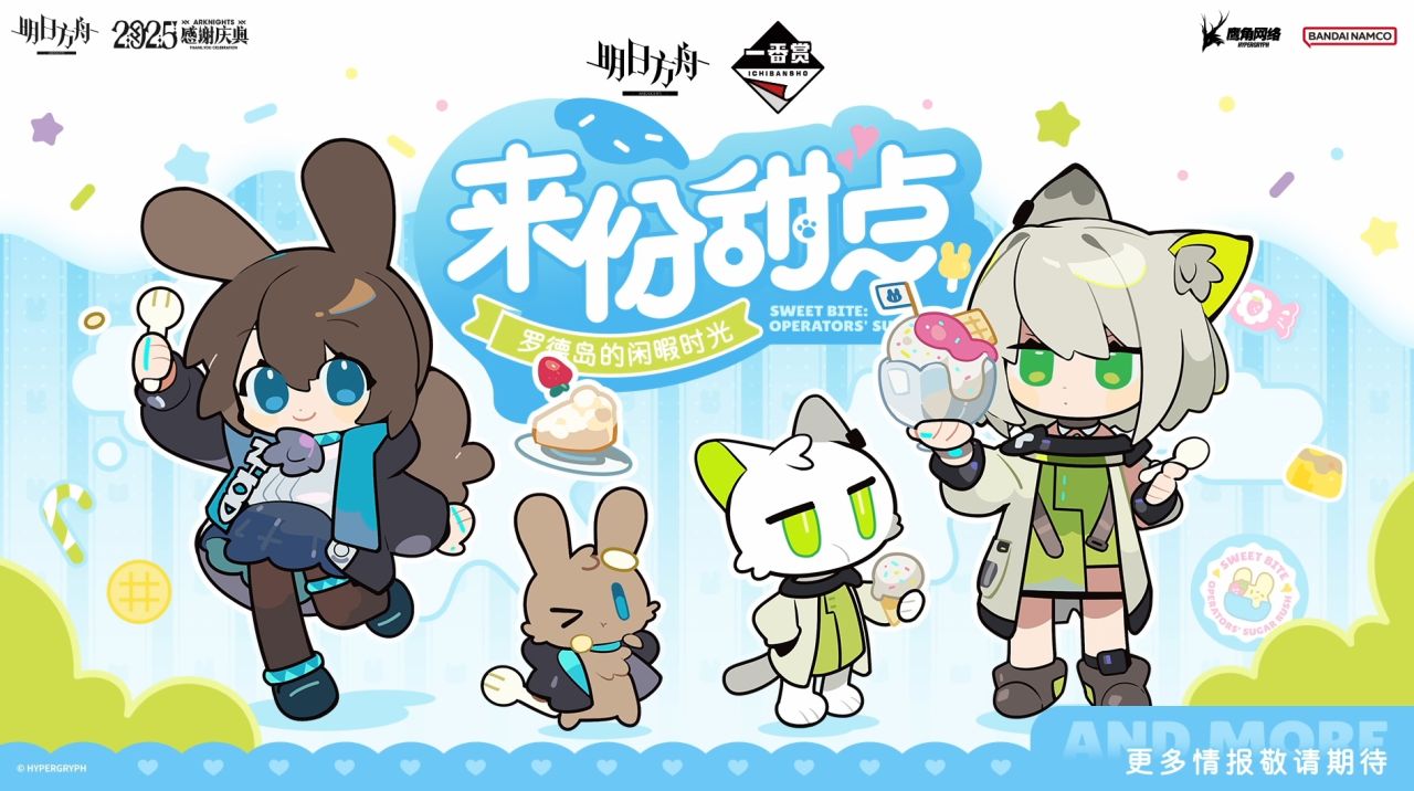 主线动画设定集。星愿系列周边。和一番赏的合作来份甜点。新约能天使,维什戴尔,庆典之夜手办。上好佳联动。123罗德岛漫画。猩红血钻的漫画。W和送葬人、lgs和银灰的粘土人,异格拉普和德克萨斯手办。明日方舟X轻松熊联动。以及和怪猎的2次联动。