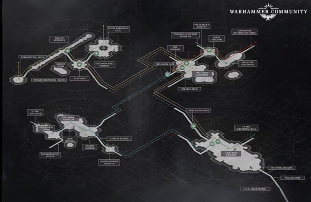 地下核心:深入基岩层下方的地牢迷宫中,藏有黑暗科技时代的未激活机械、基因种子库和囚禁堕天使的灵能监狱。最深处的“静默修道院”是暗黑天使智库的冥想圣地,其墙壁由卡利班古树化石与精金混合浇筑,可隔绝亚空间能量。