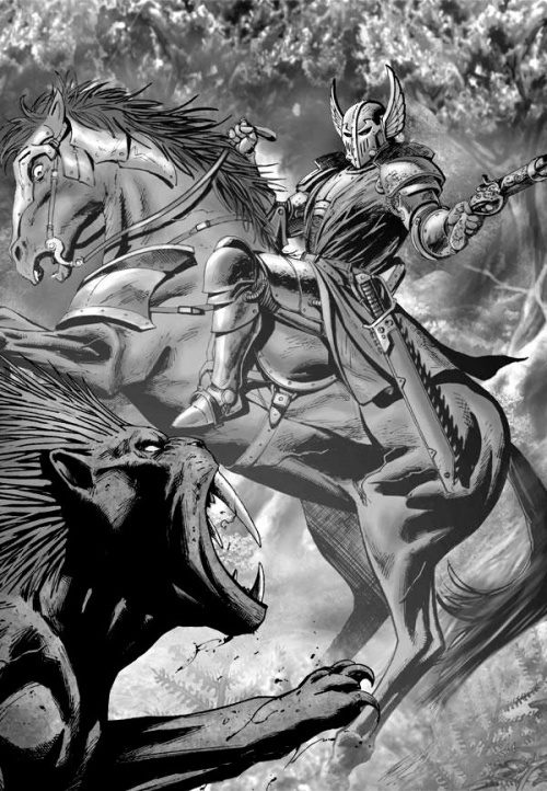 卡利班的丛林中充斥着受混沌污染的巨兽与变异生物,迫使人类在林间开辟空地建立石质要塞,逐渐形成以骑士团为核心的文明体系。莱恩在荒野中独自生存了数十年,赤手空拳对抗丛林猛兽。