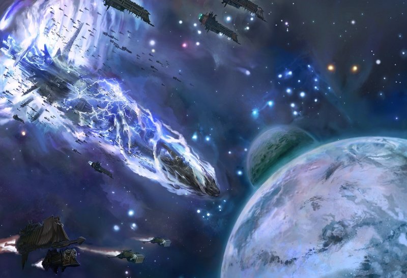 武器阵列:表面布满长矛炮位、鱼雷发射管和巨型光矛阵列,单次齐射可瘫痪混沌战巡舰。其搭载的“灭星者”导弹甚至能制造临时引力阱,将敌方舰队拖入黑洞边缘。