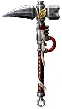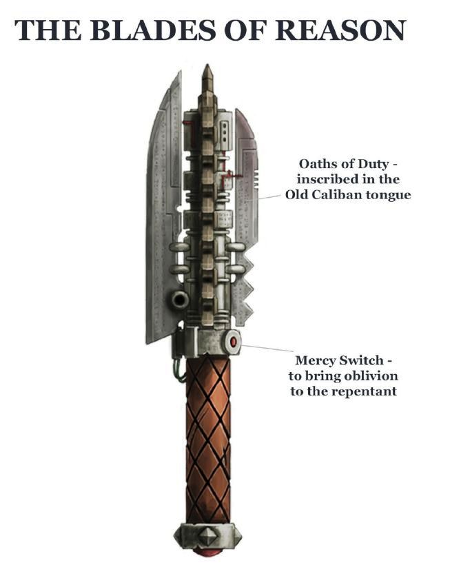 - 卡利班之戟(Halberd of Caliban):大远征时期的遗物,由原体莱昂亲自锻造,曾在卡利班战役中斩杀堕天使领主。