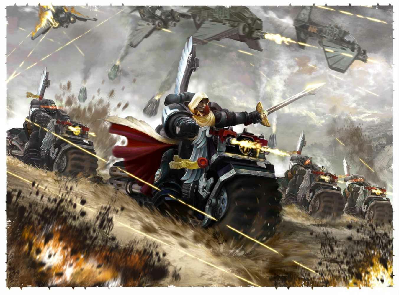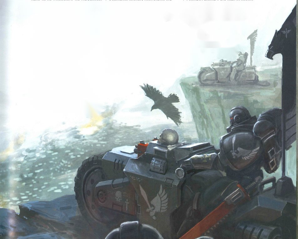 黑骑士:鸦翼的精锐部队,骑乘配备等离子爪的渡鸦IV型摩托,使用基于卡利班猎兽具改造的渡鸦之锤。他们是追捕堕天使的核心力量,需通过审讯牧师的精神拷问和智库馆长的灵能审查才能晋升。
