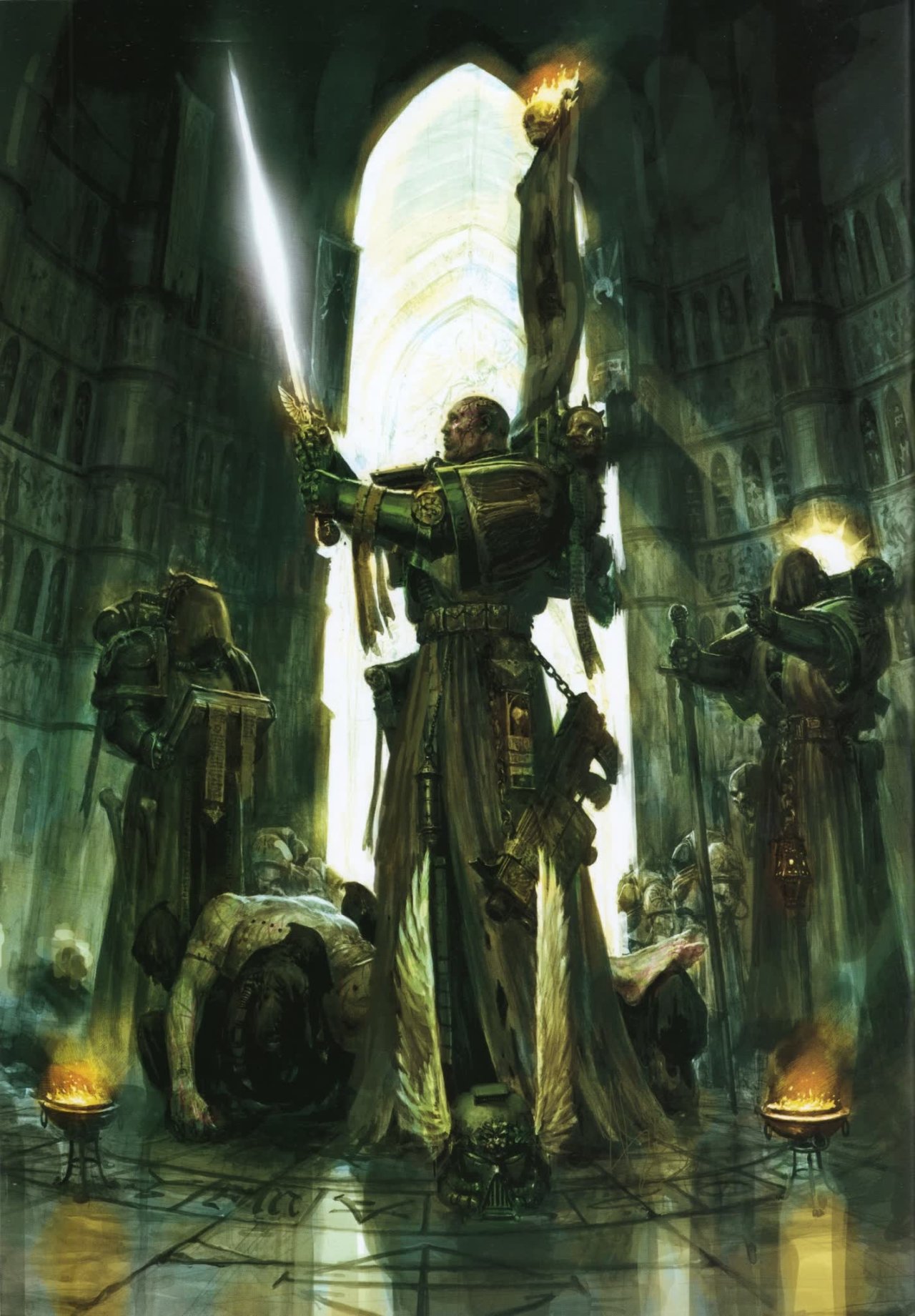 审讯牧师(Interrogator Chaplains):独立于连队的特殊职位,专门审讯堕天使俘虏,通过酷刑与心理战迫使其忏悔。他们的晋升需在死亡世界玛尔马(Malmar)完成获取黑珍珠的仪式。