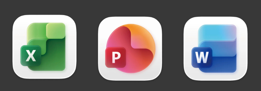 虽然每个应用的基本色调如 Word 的红色、Excel 的绿色和 PowerPoint 的橙色依然保留,但它们的呈现方式更加简洁,视觉效果更加统一,避免了过多的阴影和渐变。