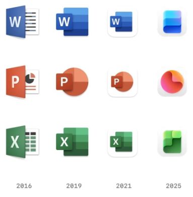 今天早上,打开电脑时,我惊讶地发现,之前熟悉的 Word、PowerPoint、Excel、OneNote 等微软应用的图标居然换成了全新的 logo。