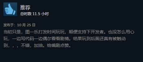 本作爲視覺小說,流程約2.5h。外表獵奇“性轉”,內核“成長治癒”,現Steam好評率100%。