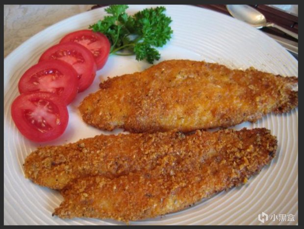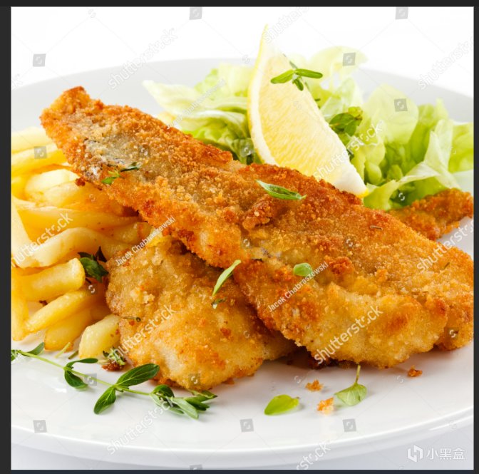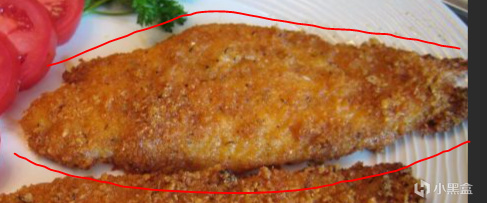 一开始,我试了一下喷枪工具,想模拟鱼排上面的颗粒质感,但是看起来跟辣椒面似的,也不好看。