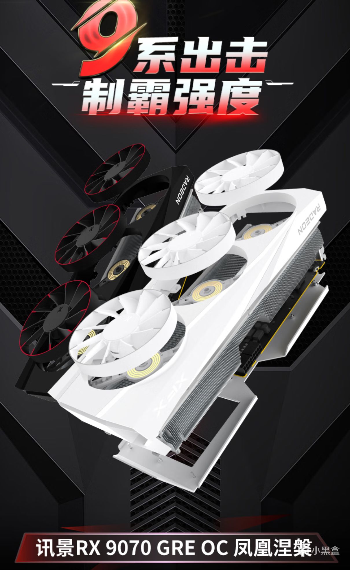 到了这个价位的显卡,或许就开始有玩家追求极致用料和颜值并存了,XFX RX 9070 GRE OC凤凰涅槃就是最好的选择,有黑白双色可选,同样是3*100mm风扇+5根纯铜镀镍热管的组合,风扇和侧翼还支持磁吸拆卸,长度是达到350mm用料很足,某东入手价3399元。