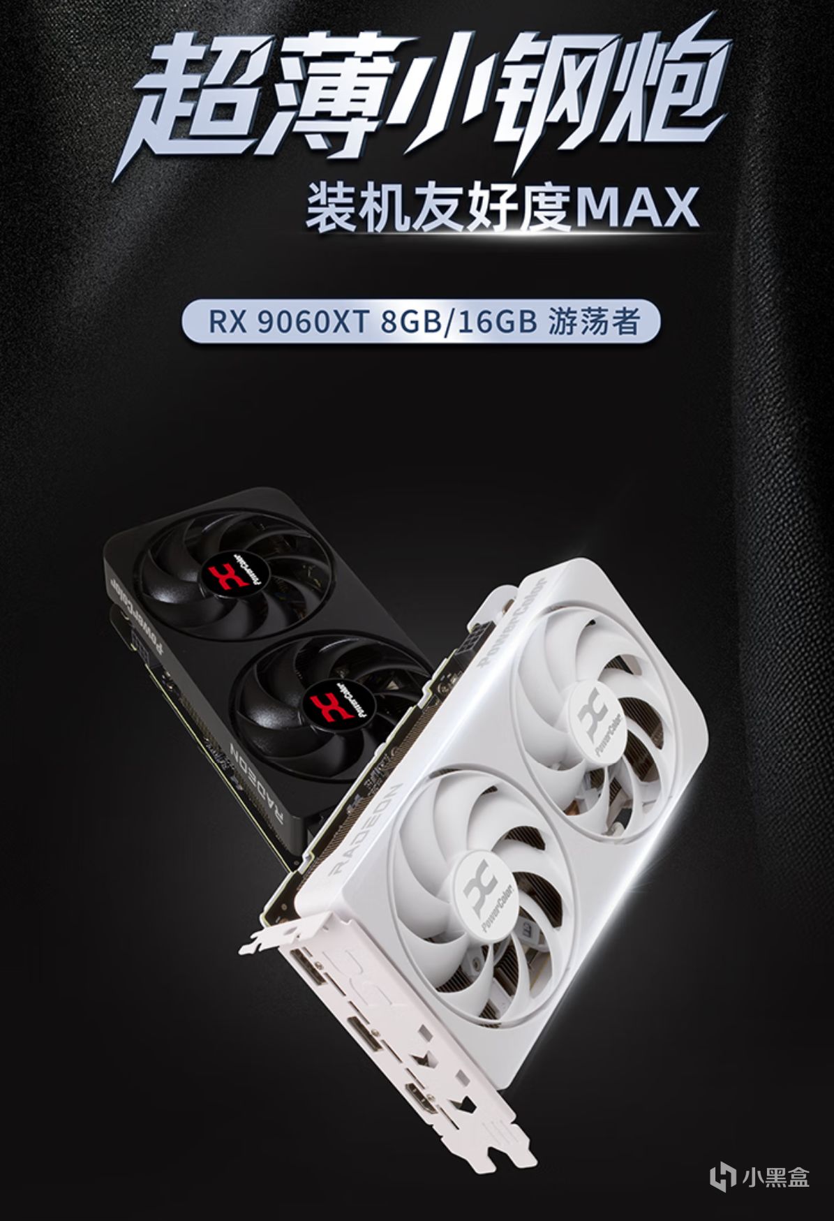 撼讯RX 9060 XT游荡者,主要卖点在于尺寸,200mm长度对于不少ITX装机方案都极其友好,铜底直触+霍尼韦尔7950变相片,本身TBP功耗只有150W/160W也很好压制,8GB版本某多入手价仅需1949元,16GB某东入手价2499元,除此之外还有白色版本可选。