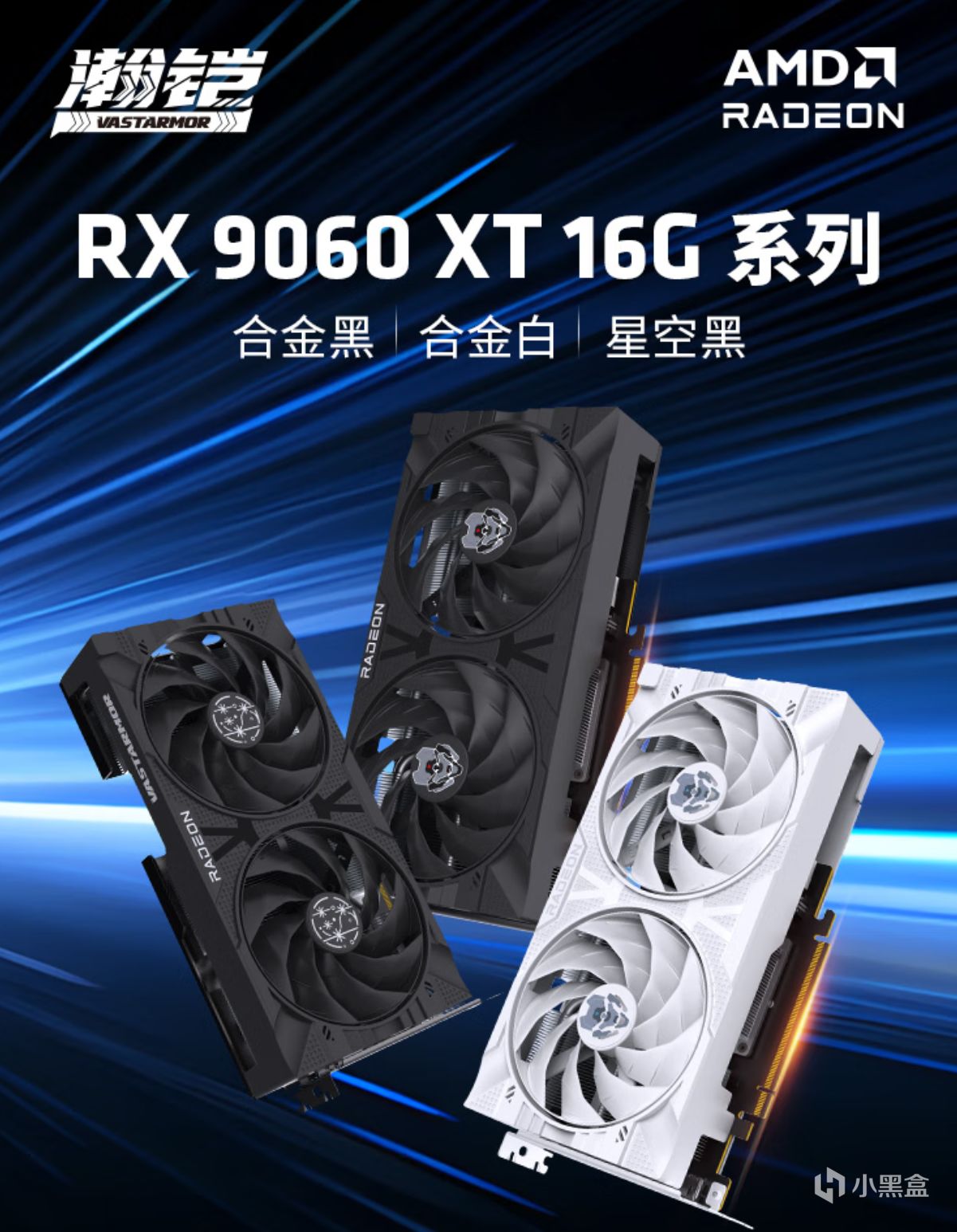 如果对于尺寸要求没有那么极致,瀚铠RX 9060 XT 16GB合金这款更推荐,长度为235.9mm也算挺紧凑,风扇尺寸是更大的2*100mm组合,同样霍尼韦尔7950变相片加持,标称Boost频率达到3320MHz性能更强一点,某东入手价2599元,也是黑白款可选。