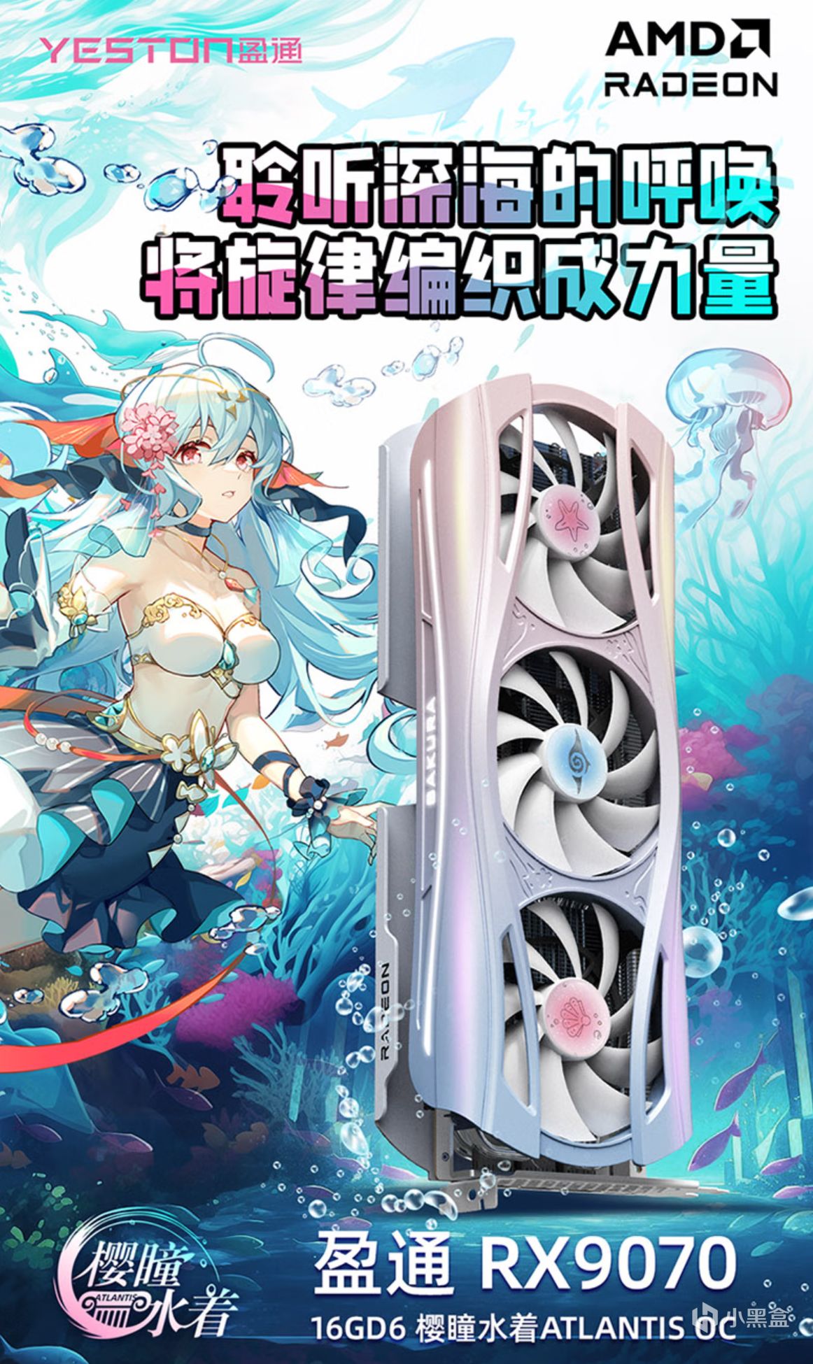 喜欢二次元风格的朋友,就不容错过盈通这款RX 9070樱瞳水着ATLANTIS OC,蓝粉交织色还自带香氛模块,4*6mm复合热管+三风扇设计,散热模块相对来说主流一些,某多价格杀到了3899元相当给力了。