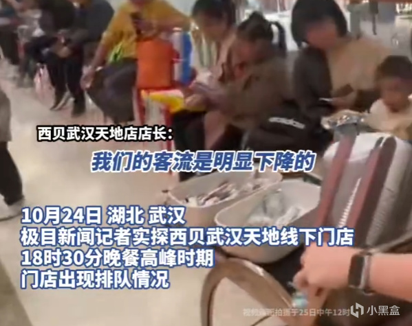 傍晚六點半的武漢天地商圈,西貝門店外又排起了熟悉的長隊。記者現場看到,店內座位已全部坐滿,用餐人羣裏近四分之三都是帶着孩子的家長,不少晚到的顧客還在店外耐心等候叫號。
