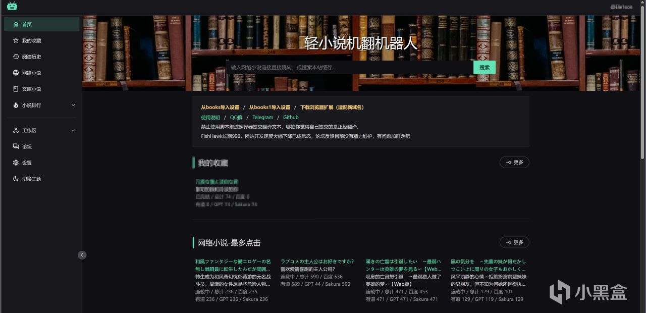 应该是个开源共享网站,站内成员分享生肉资源交给机器人大模型翻译,并自动生成EPUB格式。虽然是AI翻译但是会有人工上传术语表,能确保一些特定词汇不会翻译错,至于“达”和“雅”就看各人习惯了。
