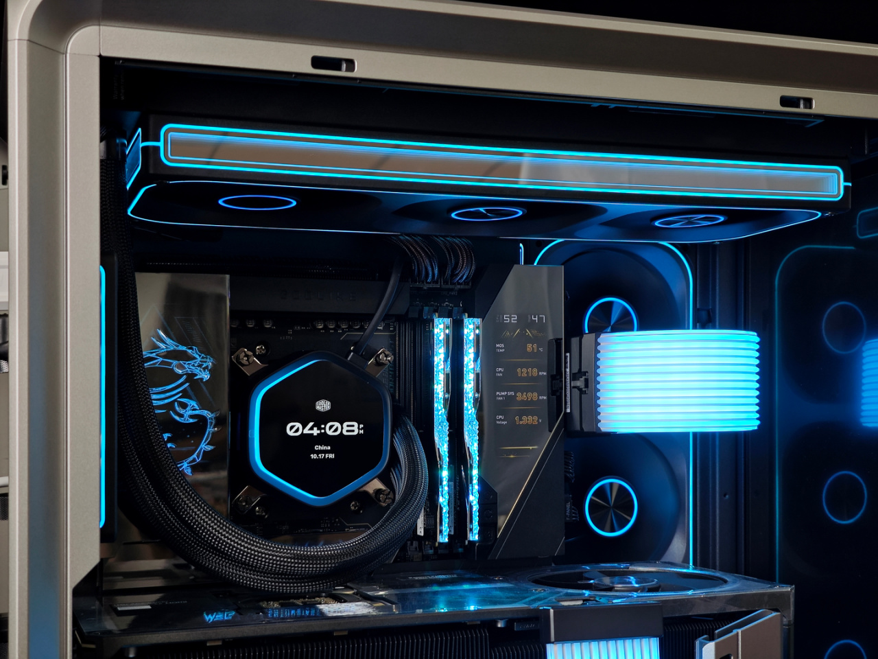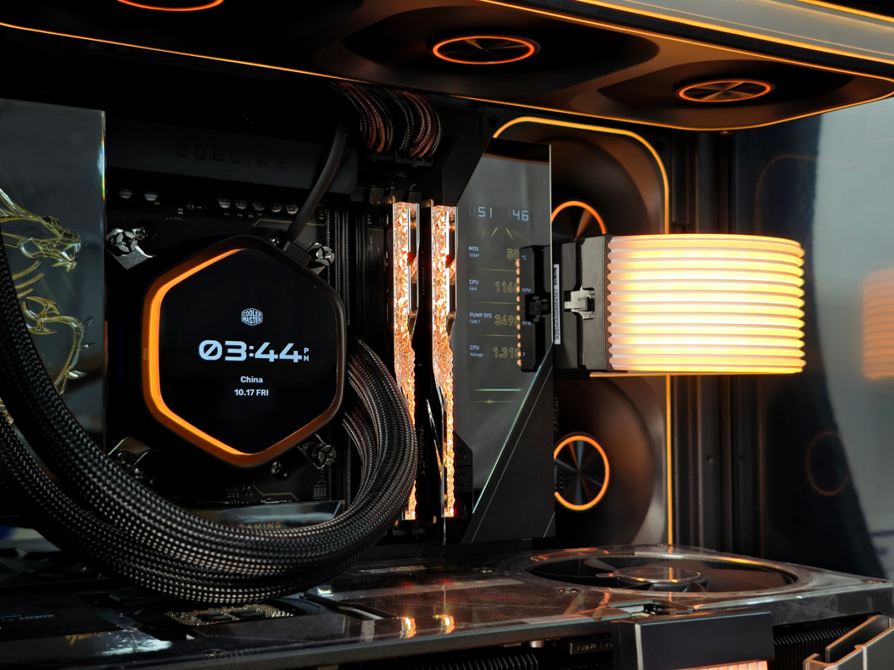 散热是——酷冷至尊 冰神G360龙影2代 LCD版 黑色,来自酷妈的经典产品,升级到LCD屏幕加上SICKLEFLOW EDGE 360 ARGB 风扇,颜值性能两不误,不愧是5哥严选